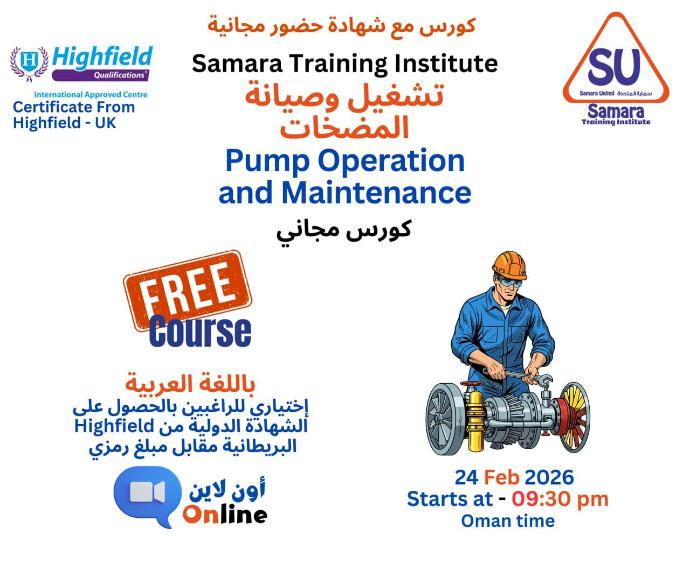 التسجيل لحضور برنامج تشغيل وصيانة المضخات